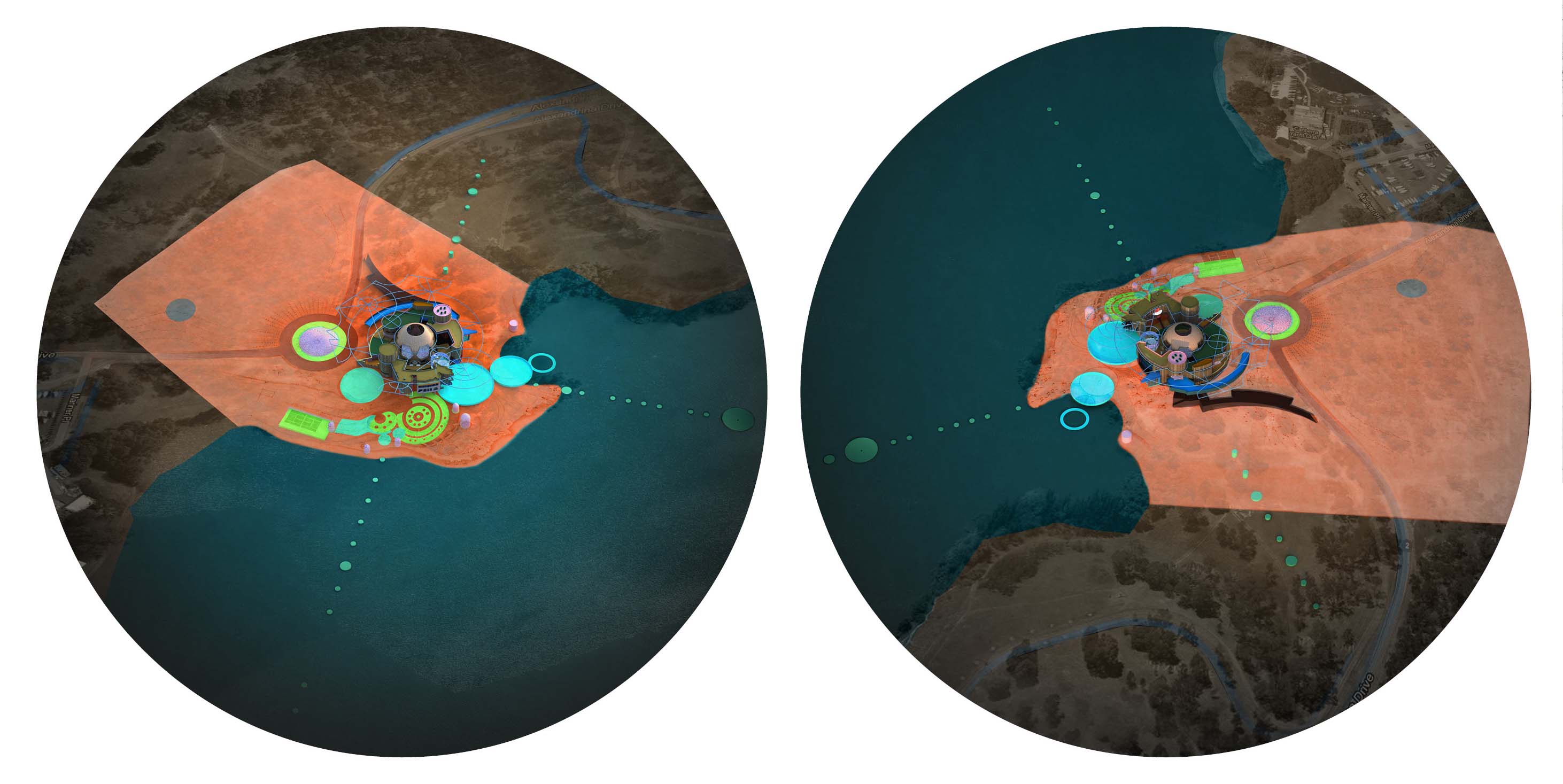 On one side, if a circle is to have a side, is found the private residence of the PM. On the other, is located the ancillary support for large scale diplomatic events. The central ‘globe’ has endured since the Pantheon was built as a Temple for All. The glazed surface of Koala eyes that assemble the walls are a reward for those who partake of Australian hospitality. Since Nero, the dining table has been where the political assessment of the world has been muttered.