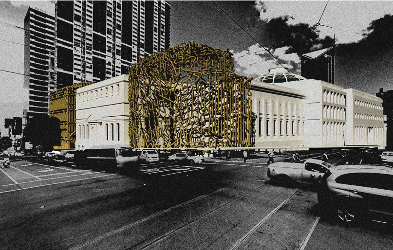 In Utero is an Expression of Interest in the redevelopment of the State Library of Victoria. The project reflects on the genealogy of the State Library, continuing the site’s legacy as a forum for cultural institutions by introducing the programmatic agent of the Emergent Cultural Institution Incubator. This incubator provides a new home for institutions such as the Australian Lesbian and Gay Archive and 3KND Radio Station, representing liminal communities and allowing them to build fiscal and cultural capital in partnership with the State Library of Victoria. It places these institutions at the forefront of Melbourne’s key seat of cultural expression in a space of diversity and opportunity.